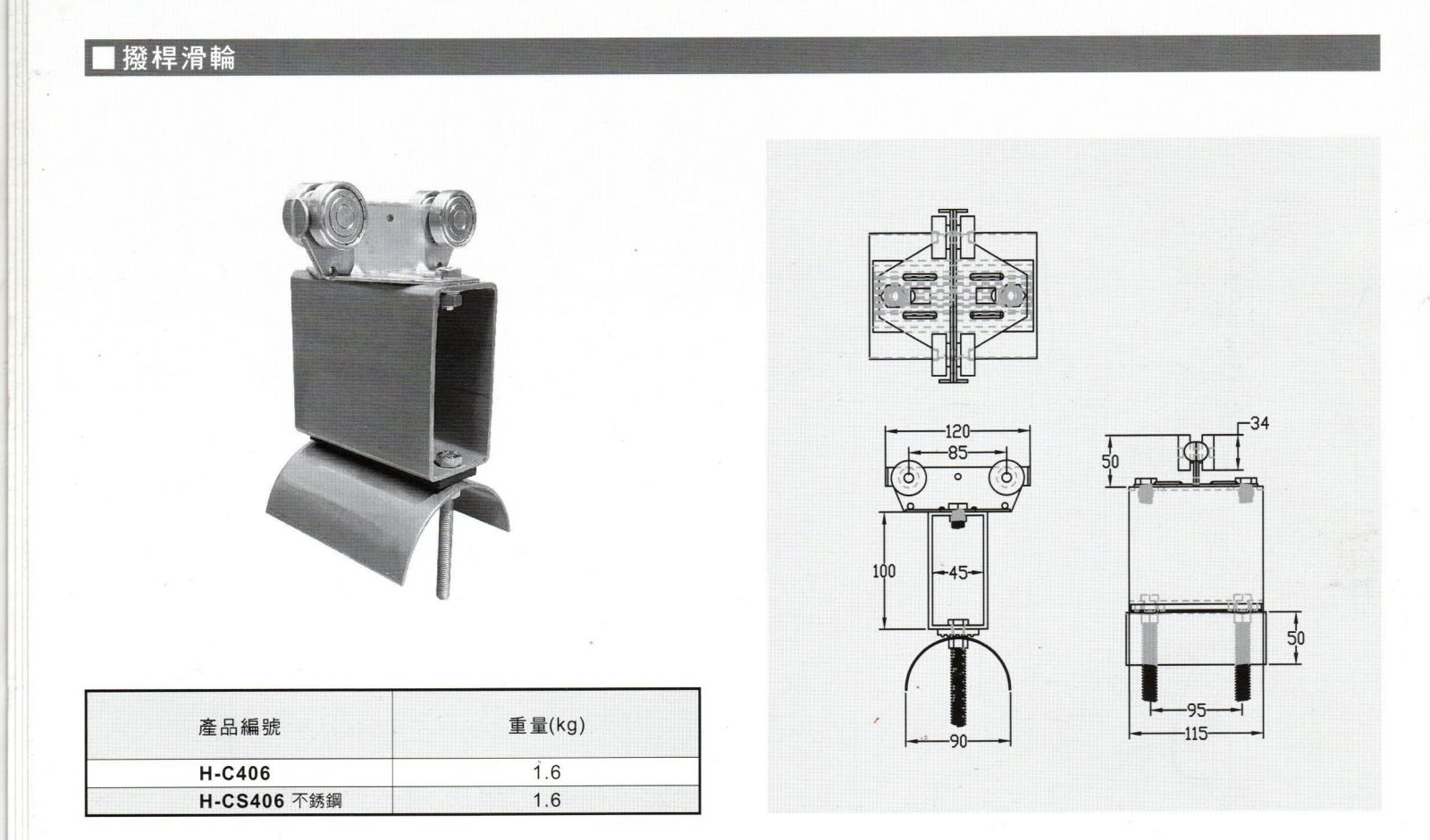 型號:H-C406(C40C撥桿滑輪),H-CS406(不鏽鋼)