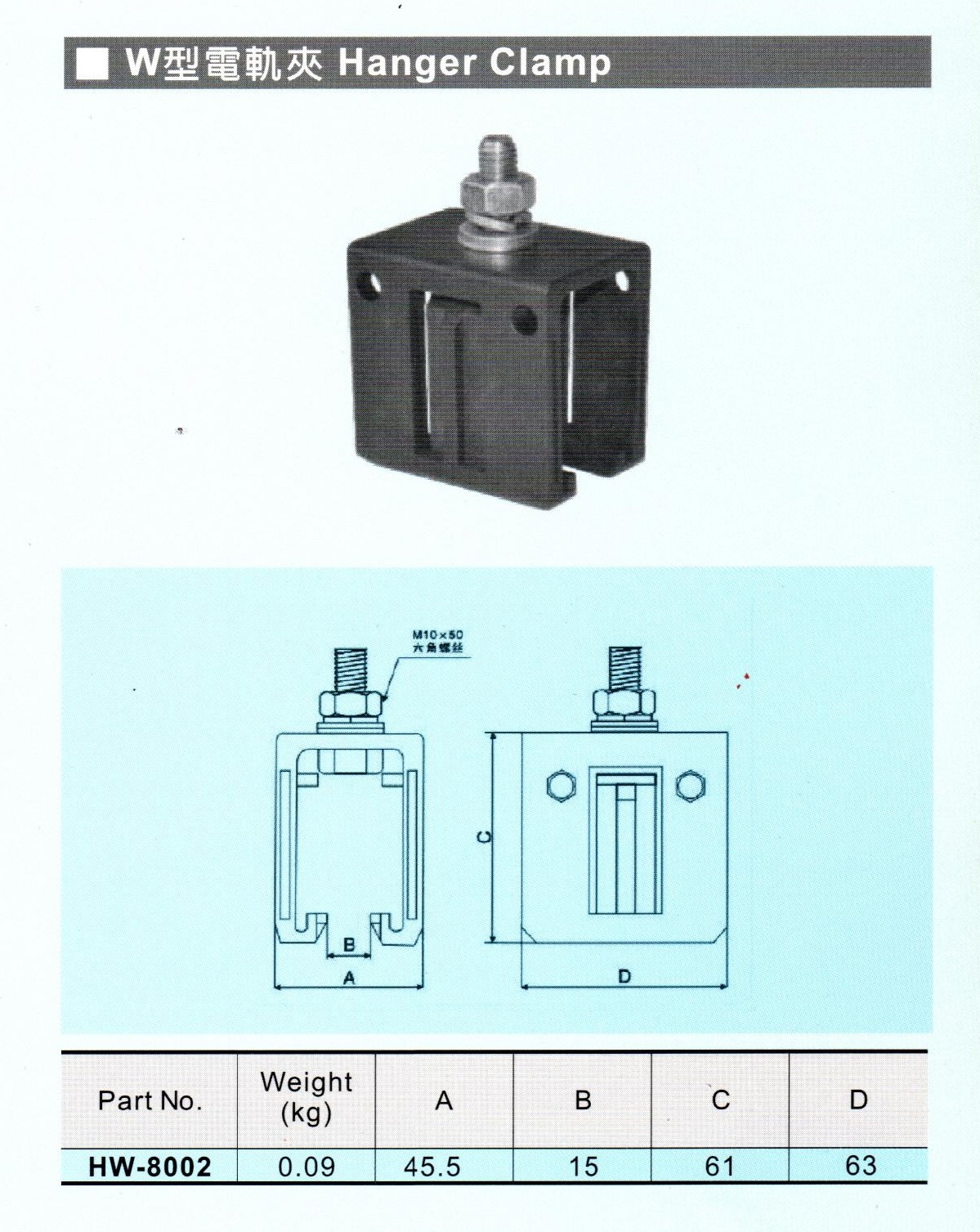 W型800A軌夾